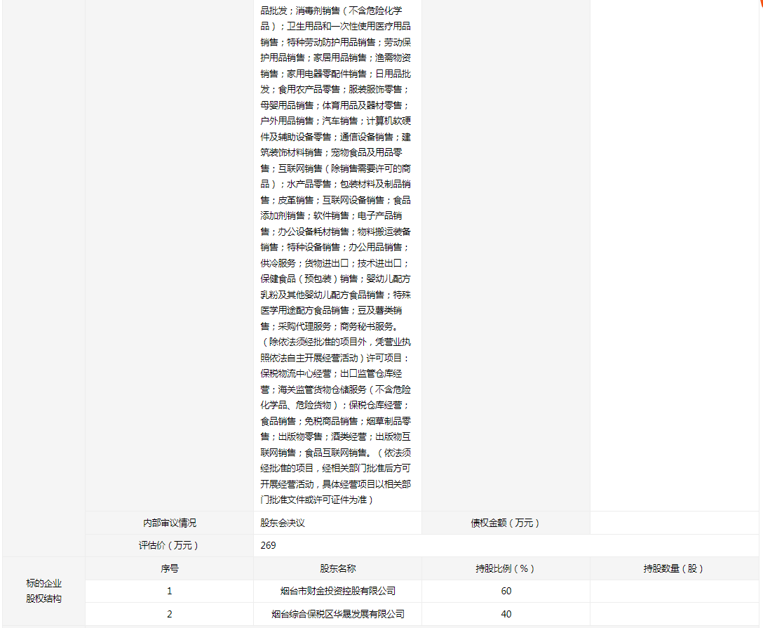 煙臺亞中海產(chǎn)品有限公司60%國有股權(quán)