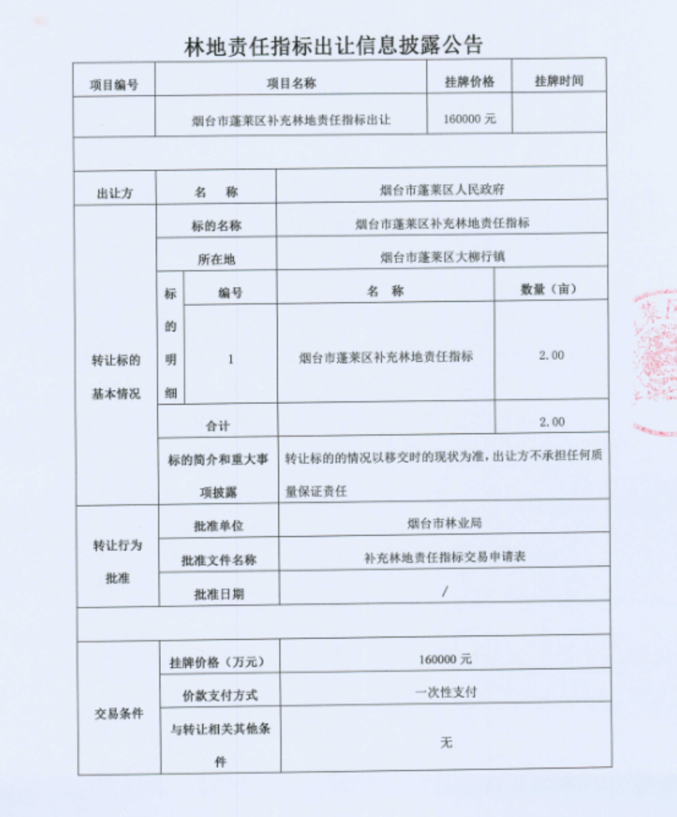 煙臺市蓬萊區(qū)補(bǔ)充林地責(zé)任指標(biāo)出讓(第二批)