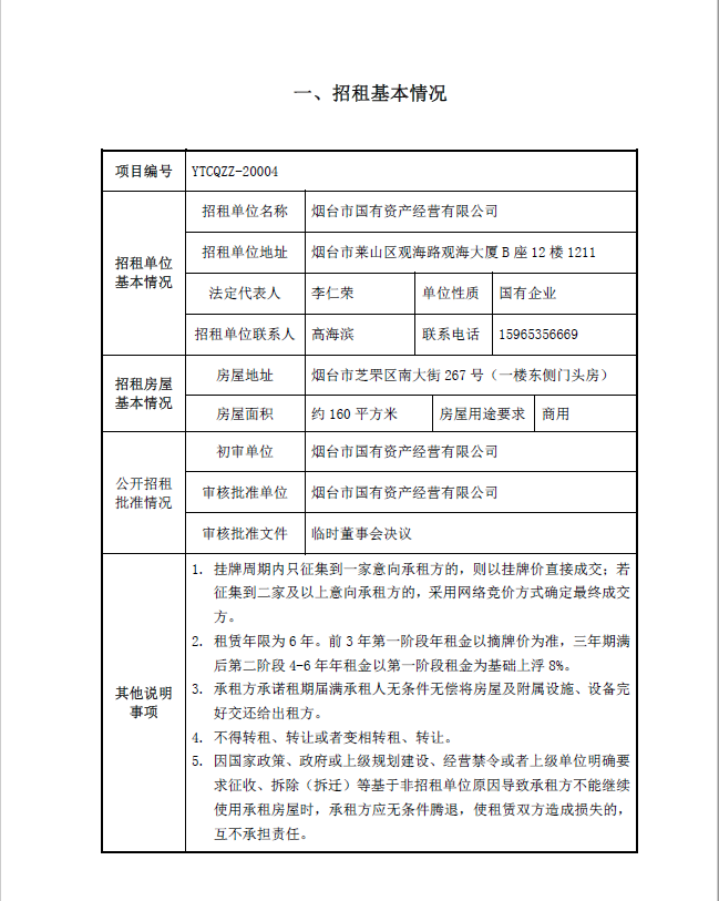 煙臺(tái)市南大街267號(hào)一樓東側(cè)門(mén)頭房招租公告