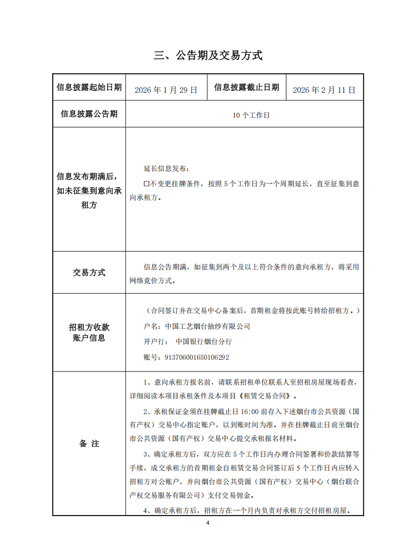 掛牌起止日期:2026年1月29日-2026年4月9日