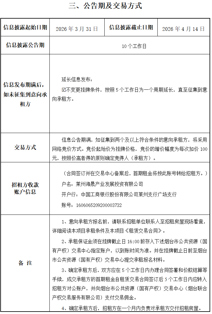 掛牌起止日期:2026年3月31日-2026年4月14日